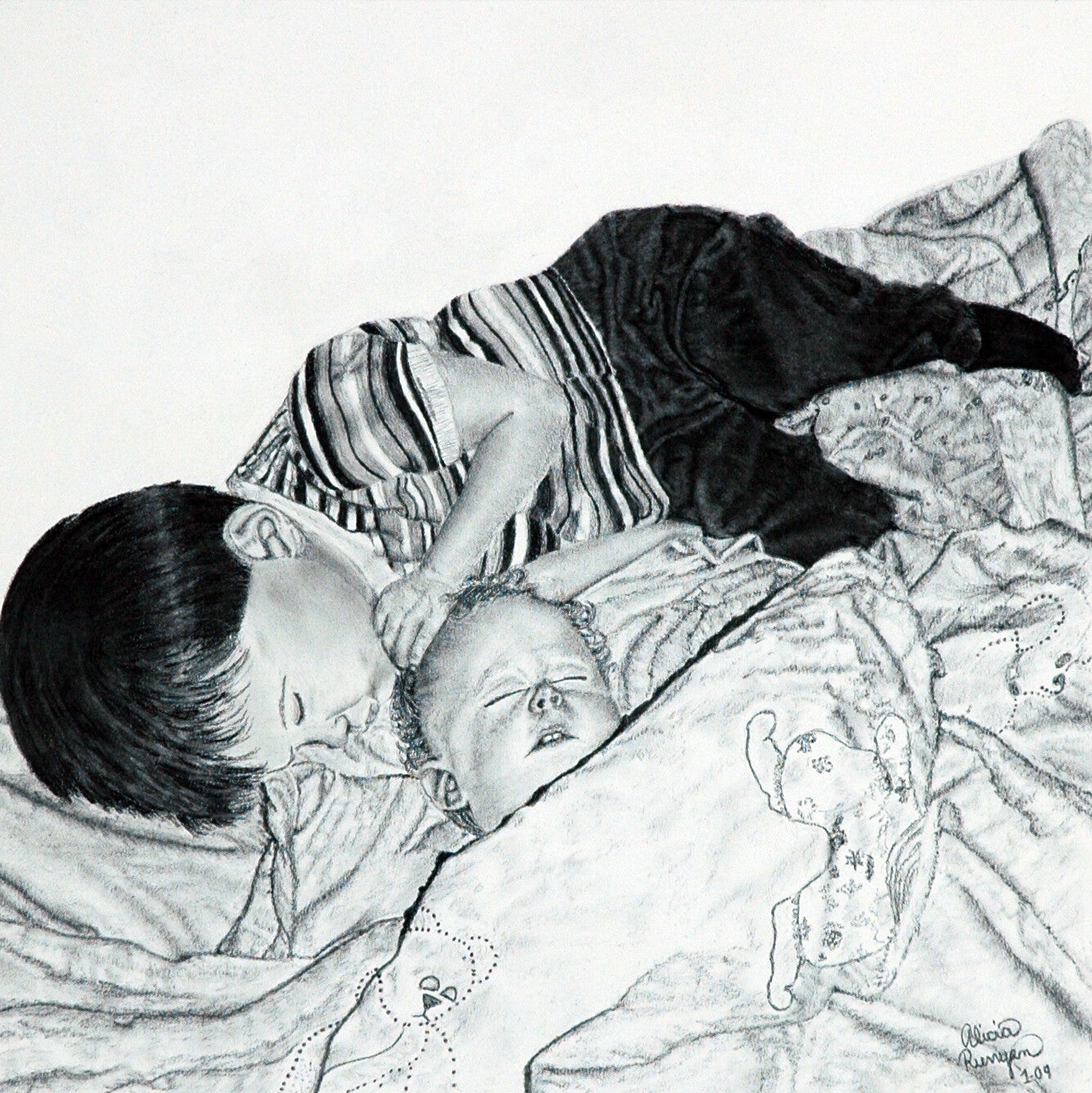 Capturing a tender moment between two siblings, charcoal was used as the primary medium to truly evoke the emotional qualities.